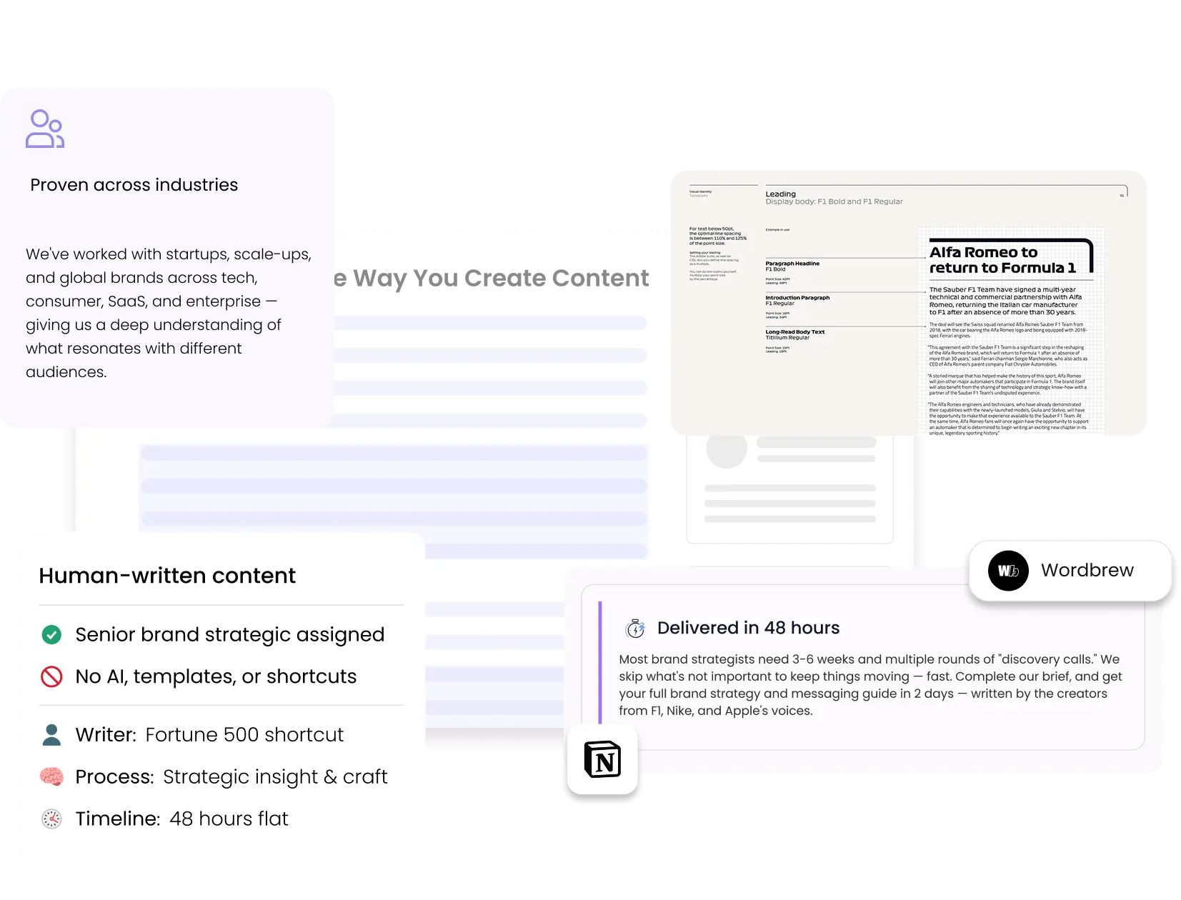 Get professional brand strategy from the writers behind Nike, Apple, and Coca-Cola. 100% human. Delivered in 48 hours.