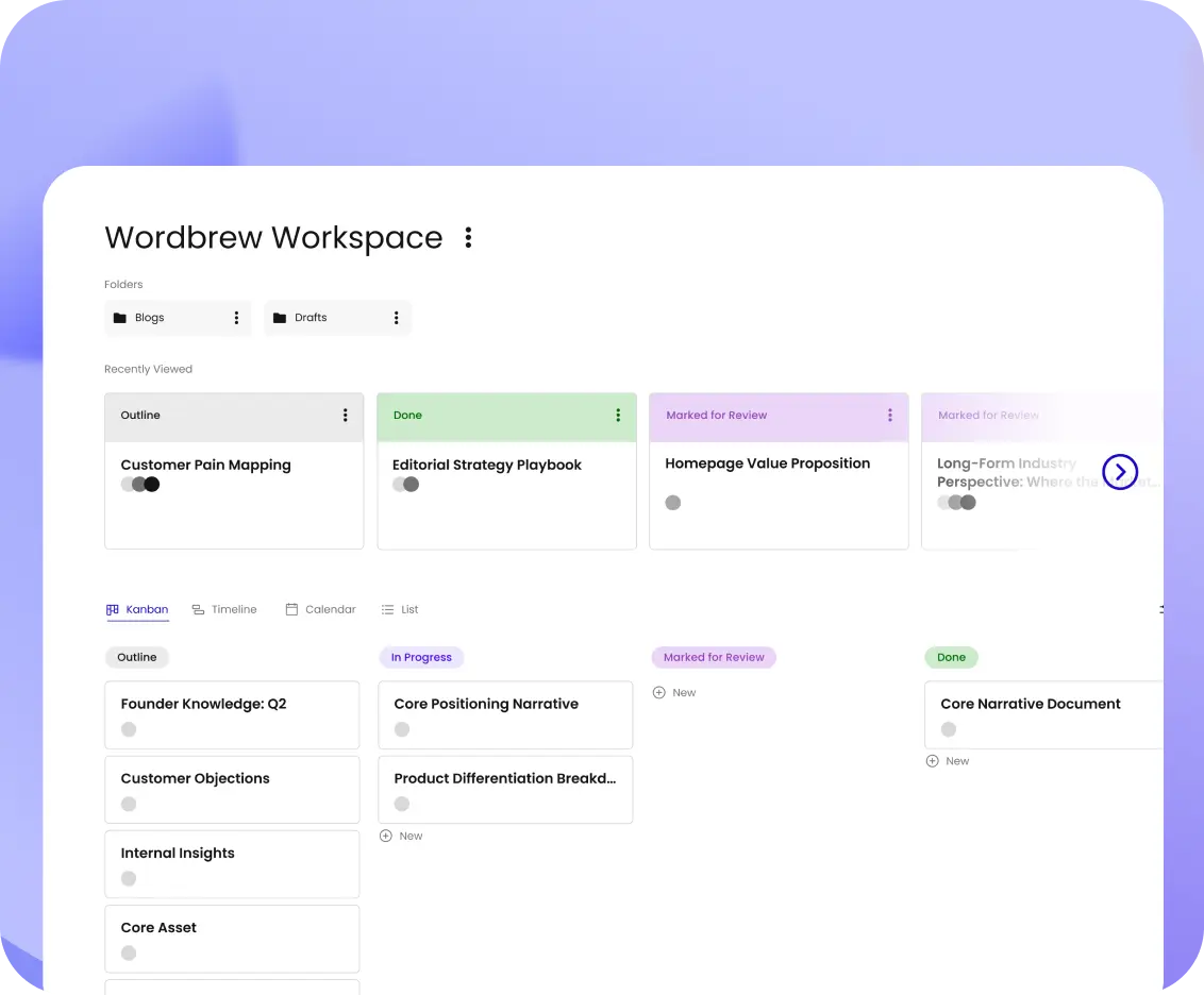 Wordbrew pairs you with a content marketer who embeds with your team, captures your internal expertise, and turns it into content that search engines cite, AI agents recommend, and buyers use to make decisions.