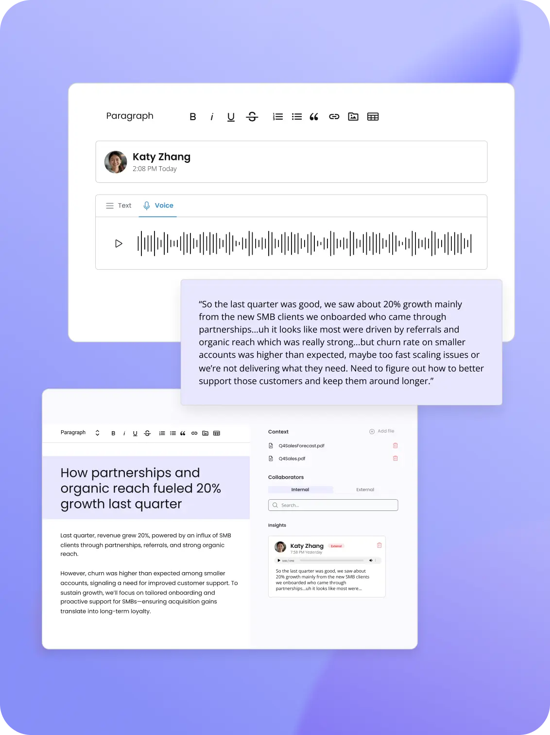 - Turn your team's expertise into reports, articles, and sales collateral distributed across channels